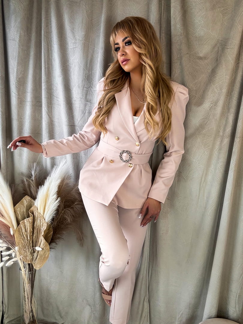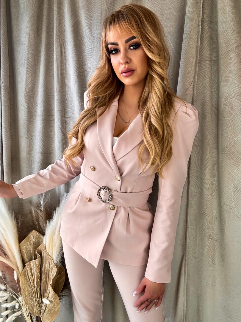 Elegancki klasyczny garnitur damski pudrowy róż KATRINE