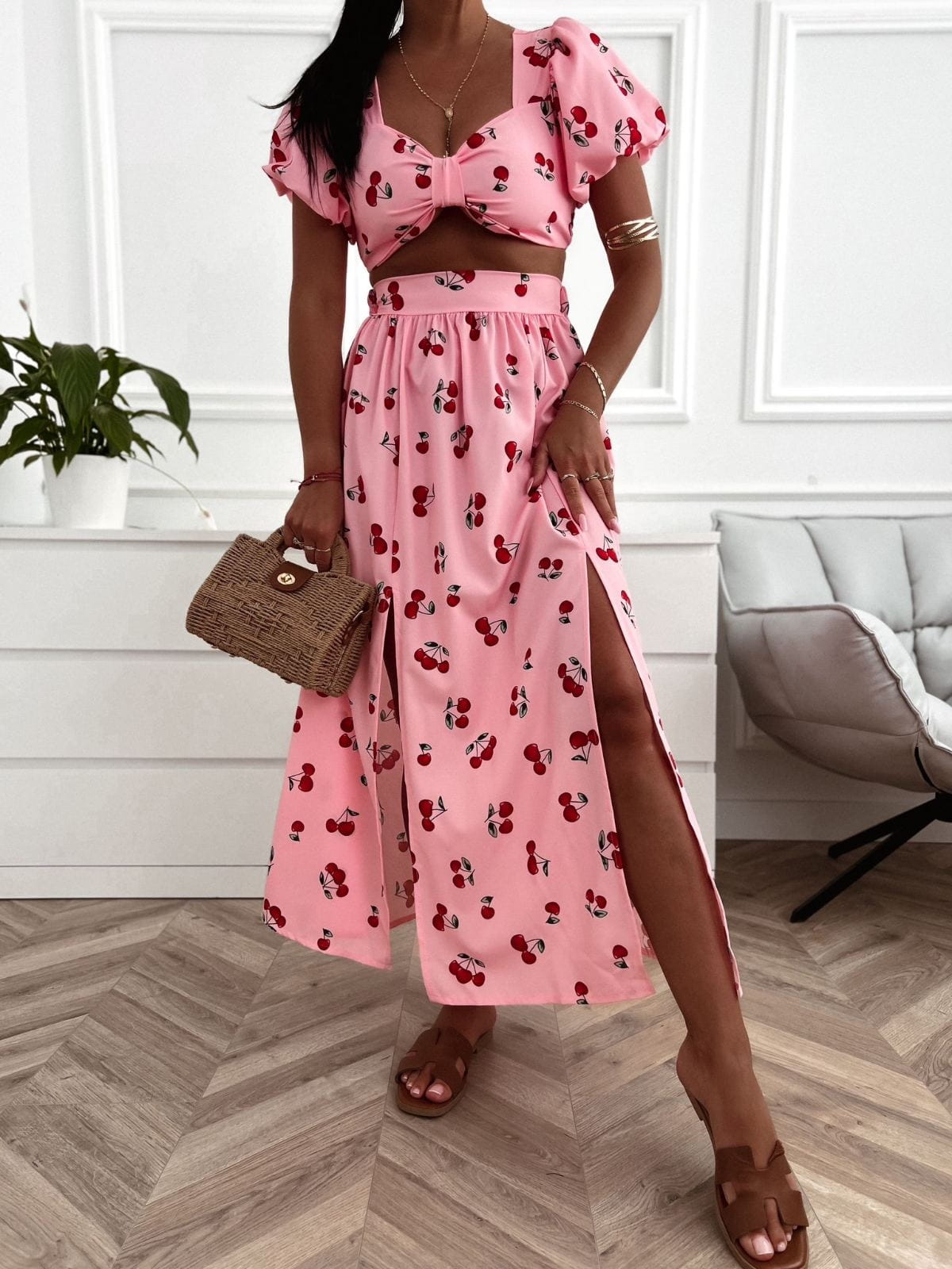 Komplet CHERRY możesz nosić na różne sposoby- połączyć z sandałami dla casualowego stylu, lub dodać szpilki na wieczorne wyjścia.